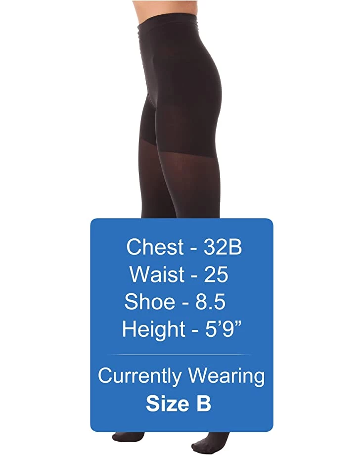 Impressed! I wore these under a slim fitting stretch lace dress and looked like I’d lost 10 lbs! As comfortable as shape wear can be and a nice medium opacity for winter dress-up (not solid black, but not sheer either). Usually don’t spend this much on tights, but I’m glad to have these. For reference, I am 5’3″, 140 lbs and size B fit perfectly.